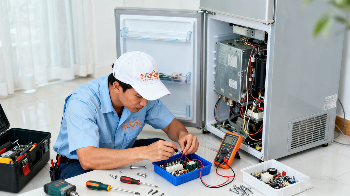 使用万用表、示波器等专业工具对电路进行检测,精准定位故障源(如主板、电机、传感器、压缩机等)。